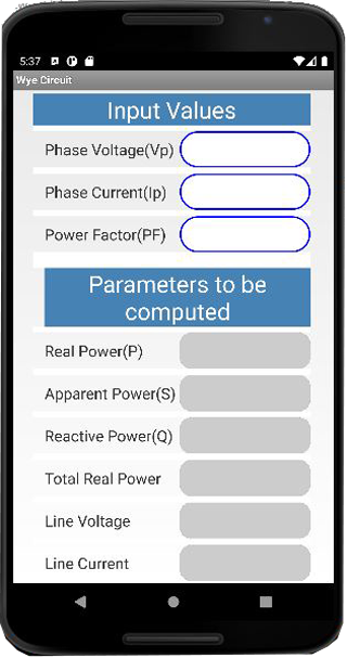 Kostenlose App, die Parameter eines 3-Phasen-Stern-Schaltung zu berechnen.