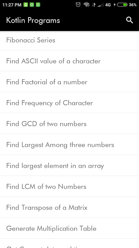 This 300+ Kotlin Programs will help you to learn Kotlin programming language by simple example. This Kotlin Programs App is very useful for all type of learners. We designed this Kotlin Programs App in a plain simple way in order that it is easily understandable by everyone.