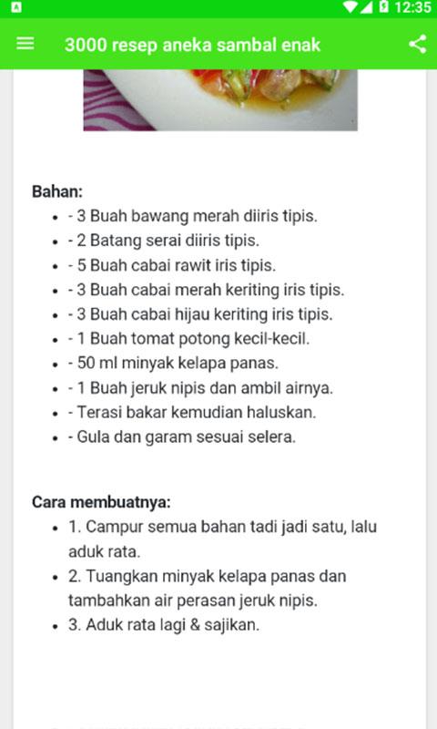 Aplikasi ini berisi 4000 Resep Aneka Sambal.