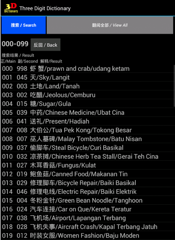 3D-Wörterbuch (dua pek kong 3D) helfen Ihnen, Ihren Traum-Analyse, erhalten Sie Ihren 3D- oder 4D, schalten Sie Ihren Traum und schlagen ein kleines Vermögen.