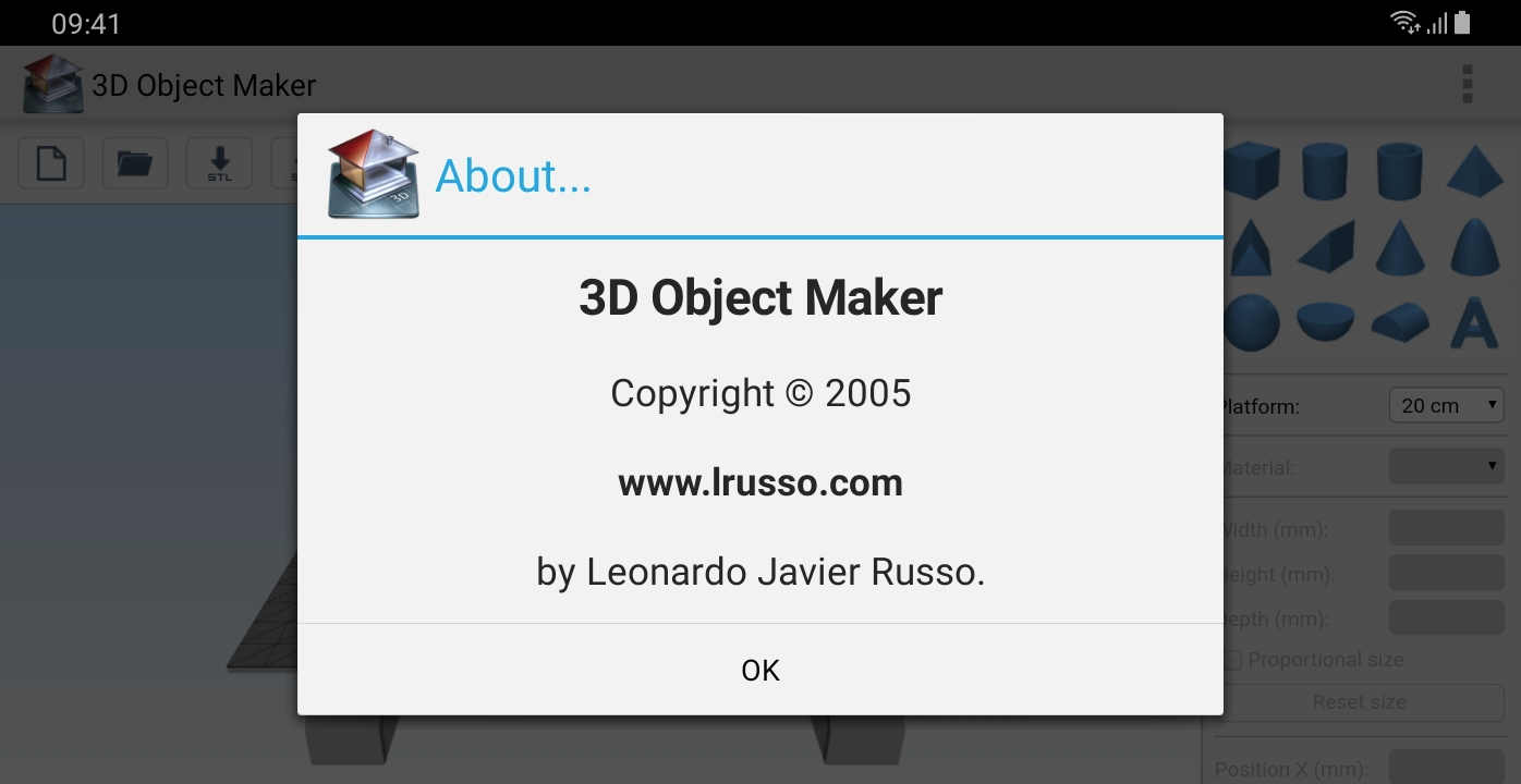 3D Object Maker kompatibel mit Modellen im STL-, OBJ- und 3DS-Format. Sie können Ihre Arbeit druckfertig im 3D-Format (STL-Format) exportieren oder später weiterarbeiten (SCENE-Format).