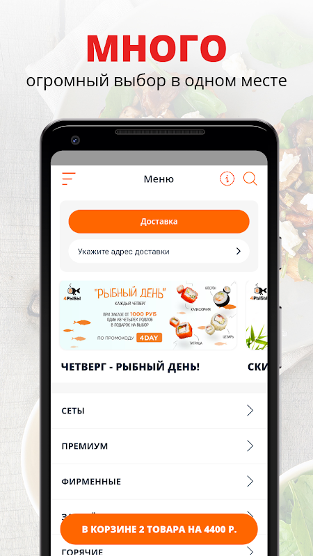 Sushi Bar 4 Fish in Lyubertsy - kostenlose Lieferung von Sushi, Brötchen, Burgern, warmen Speisen und Getränken.