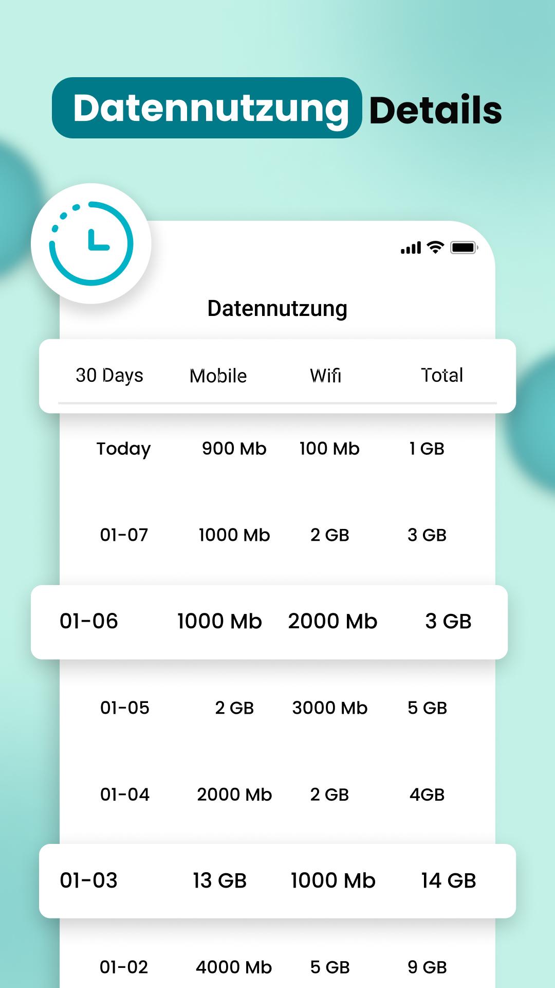 •Detaillierte Datennutzung und Signalstärketest