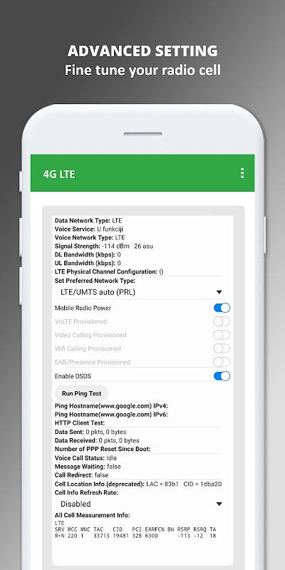 Diese App hilft Ihnen, das Netzwerk in 4G / 3G / 2G zu ändern und im ausgewählten Netzwerk zu bleiben.