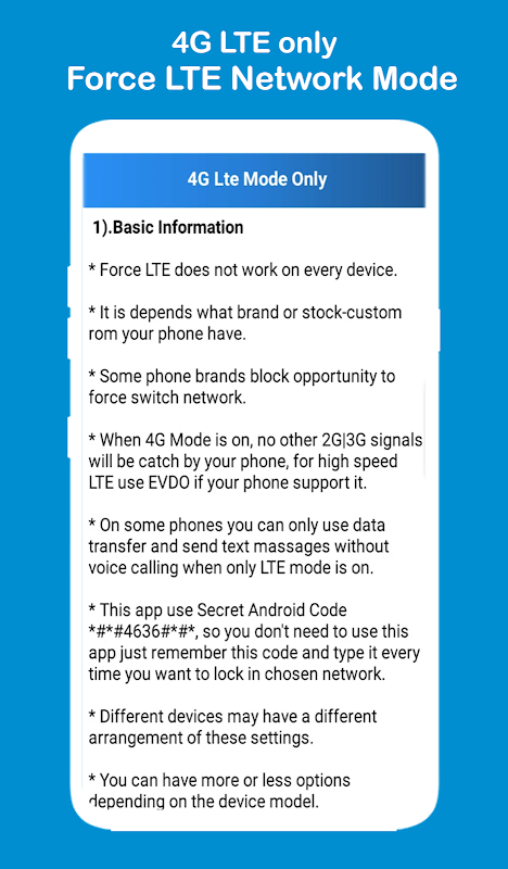 4G LTE ONLY help you to switch into 4G network just in one click.