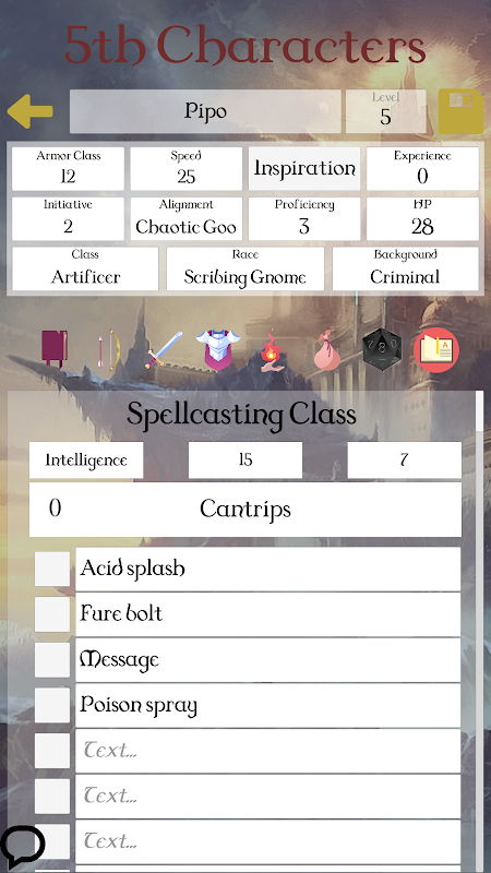 Unsere App optimiert die Charakterverwaltung und ermöglicht es Ihnen, den Fortschritt, das Inventar, die Zauberslots und mehr Ihres Charakters im Auge zu behalten. Verabschieden Sie sich von der Mühe manueller Charakterbögen und genießen Sie den Komfort der digitalen Charakterverwaltung, die Ihnen jederzeit zur Verfügung steht.