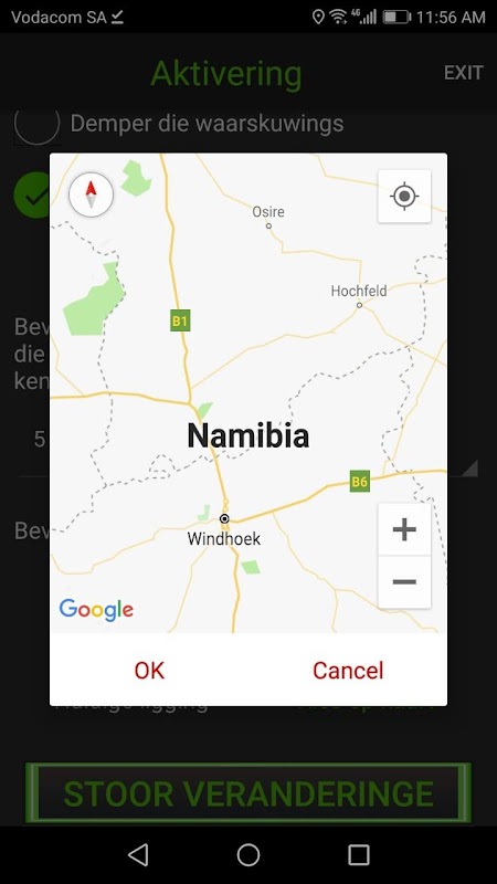 - Jou nood kontakte sal ‘n boodskap ontvang met jou GPS ligging wat elke 30 sekondes opdateer word indien jy beweeg.