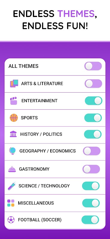 Bist du bereit für einen Wettkampf in Themen wie Geographie, Politik, Wirtschaft, Sport und vielen mehr? Über 1500 spannende Fragen erwarten dich in diesem ultimativen Party-Quizspiel!
