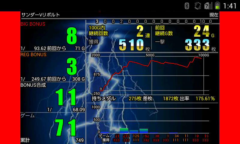 Android端末を使用した家スロ、家パチ用データカウンター。 別売のBluetoothアンテナを実機に繋ぎ、スマホでデータ閲覧!