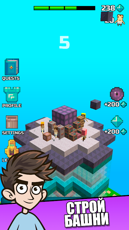 Aber Ihr Abenteuer fängt gerade erst an. Schließe Quests ab, nimm an Ranglistenwettbewerben auf der ganzen Welt teil und werde der beste Baumeister in der Geschichte von A4. Unter der Anleitung von Vlad A4, Glent und Reavi verbessern Sie Ihre Werkzeuge, um noch prächtigere Türme zu errichten und neue Rekorde aufzustellen.