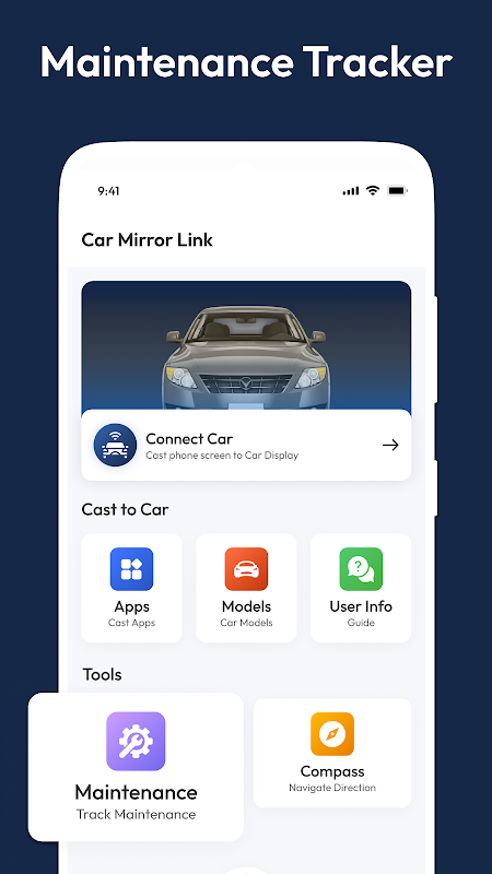 Mit Wartungstracker, Kompass und Benutzerhandbuch verbessert Aaad CarStream Ihr Fahrerlebnis und bietet Ihnen mehr als nur Spiegelung. So können Sie Ihr Fahrzeug pflegen und gleichzeitig sicher navigieren.