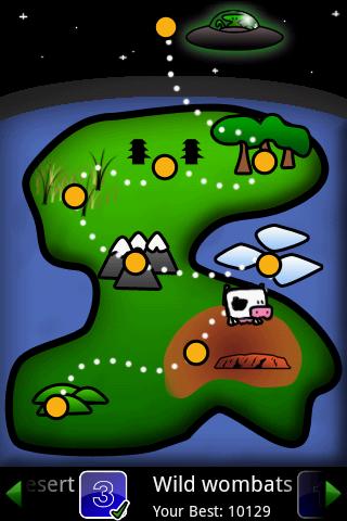 Deine Freunde wurden von Außerirdischen entführt! Verwende die Neigungssteuerung, um dem UFO zu folgen und sammle unterwegs Power-Ups ein, aber pass auf, dass du nicht fällst...