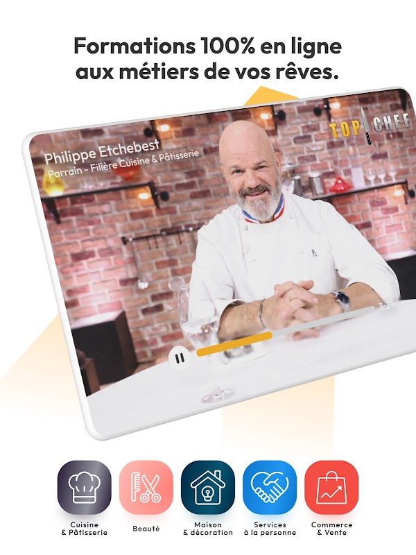 Philippe Etchebest teilt seine exklusiven Ratschläge per Video mit einer guten Portion Motivation während des gesamten Kurses