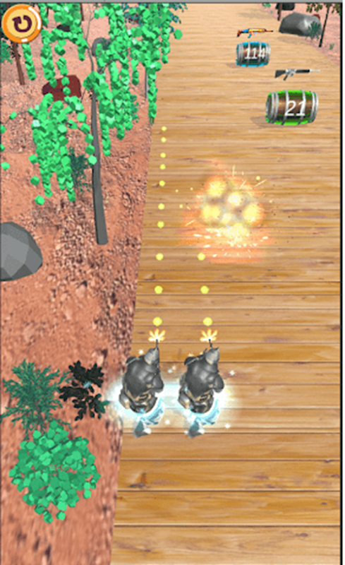 Sie müssen den Spieler nach links und rechts bewegen und auf die Läufe schießen, um neue Waffen zu erhalten.