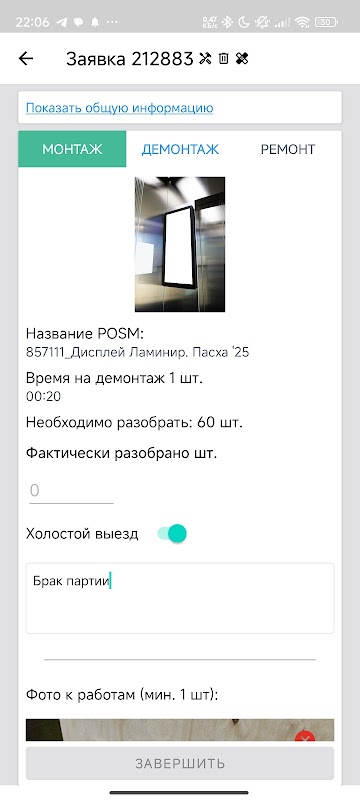 ⁃ Sammeln Sie Informationen über erledigte Aufgaben in Form von Umfragen und Fotoberichten