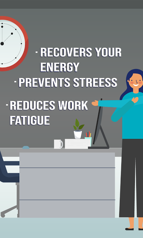 Mit unserer App können Sie gesundheitlichen Problemen durch wiederholte Arbeit oder längere statische Positionen an Ihrem Arbeitsplatz vorbeugen. Sie können überall trainieren, ohne Ausrüstung.