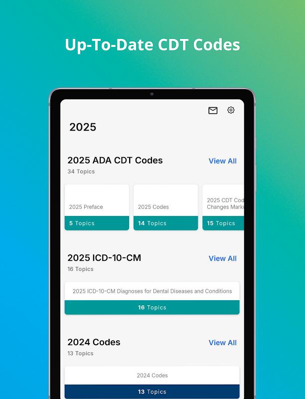 die vollständigen CDT-Codes für 2026 und 2025 sowie ICD-10-CM-Codes speziell für die Zahnmedizin.
