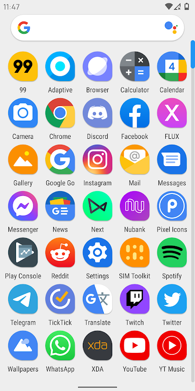 Adaptive Icon Pack ist ein Icon Pack, mit dem Launcher Adaptive Icons auf allen Geräten mit Android Oreo oder höher anzeigen kann. Das Adaptive Icon Pack wurde absichtlich so konzipiert, dass es keinen Stil oder kein Thema hat, sondern Adaptive Icon-Varianten Ihrer beliebtesten Apps bietet, die so aussehen und sich so anfühlen, als ob der ursprüngliche App-Entwickler sie erstellt hätte.