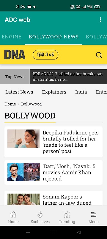 Neue Bollywood-News-Website hinzugefügt.