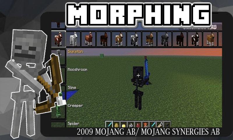 This app provides new popular mods and maps for craft. Actuality in this app you can find a mod with an abbility to morph into mobs. The Morph Mod lets you morph into almost any type of mob in craft. It’s really fun to use and works for cows, sheep, zombie pigmen and many more. You will get any powers which the mobs have.