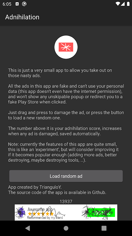 Der Quellcode ist auf Github verfügbar: https://github.com/TrianguloY/Adnihilation
