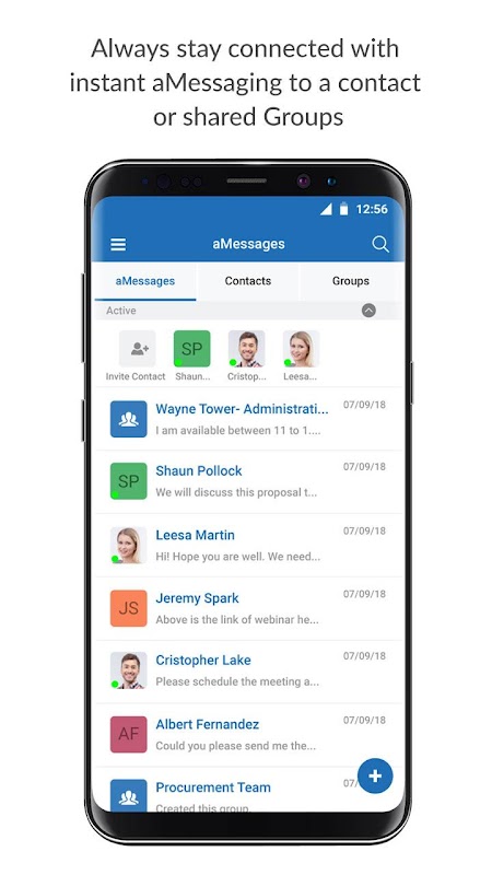 aMessage sorgt für sichere Geschäftsnachrichten und Dateifreigaben mit Gruppen und Einzelpersonen. Über 300 Dateitypen können online angesehen werden.