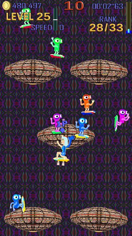 Im Weltall gibt es Äther, Außerirdische und natürlich Äthersurfer. Außerirdische wollen Äthermädchen und Ätherjungen entführen und der Menschheit Ärger bereiten. Springe hoch und schnell, um Äthermädchen und Ätherjungen bei der Flucht mit ihrem Raumschiff zu helfen.