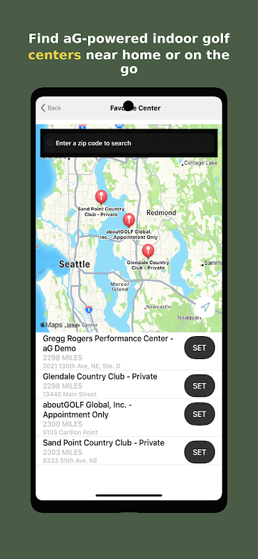 • Finde jederzeit und überall aG-betriebene Indoor-Golfzentren in deiner Nähe.