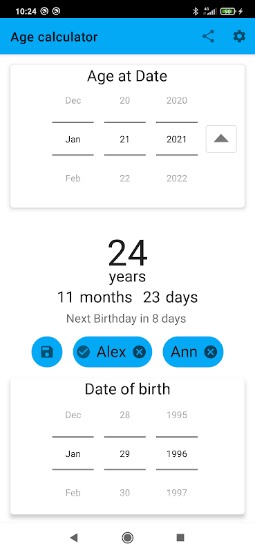 - Direkt in der Anwendung können Sie nicht nur das Alter einer Person berechnen, sondern auch eine Erinnerung einstellen, damit Sie nicht vergessen, ihm alles Gute zum Geburtstag zu wünschen.