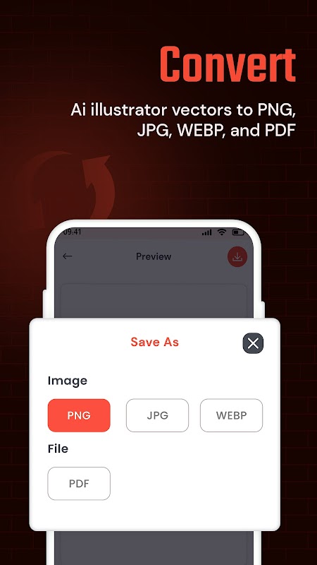 Illustrator-Benutzer laden dieses wertvolle Tool herunter, um auf dem Smartphone auf .ai-Dateien zuzugreifen und diese in die Formate PNG, JPG, WEBP und PDF zu konvertieren.