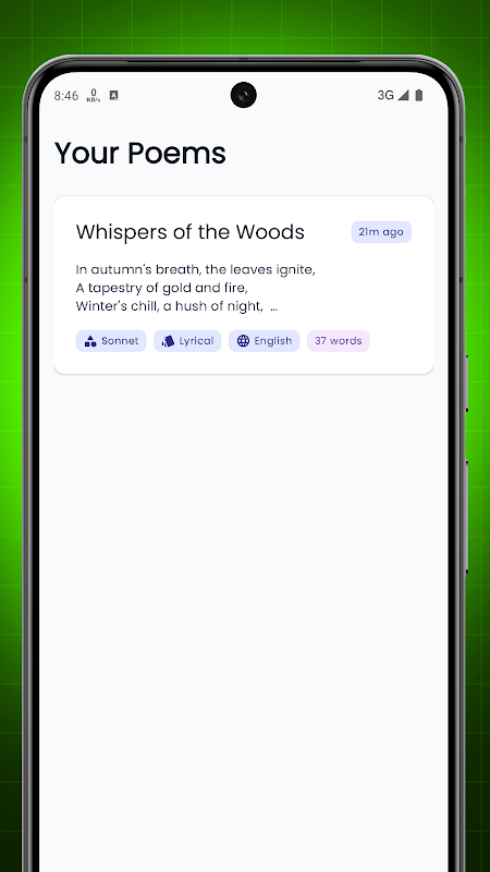 • Create poems in 16 different styles including lyrical, narrative, and romantic