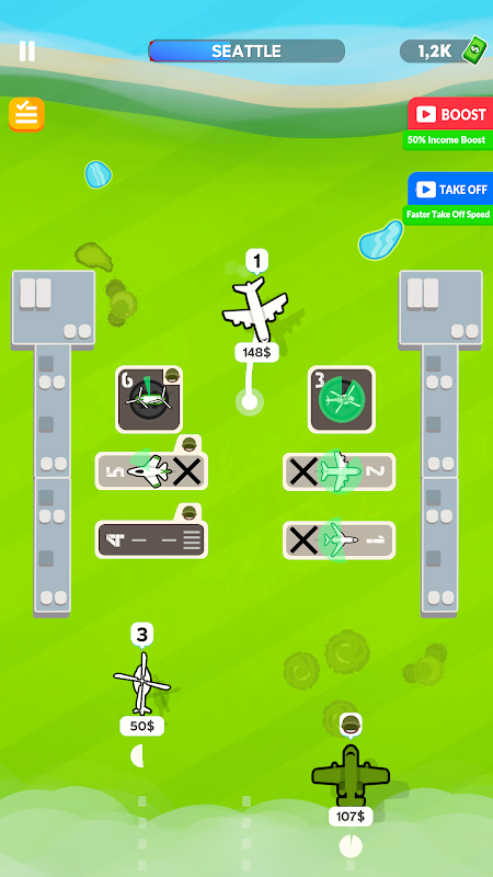 Zeichne einfach einen Weg und ordne den richtigen Flugzeugtyp anhand seiner Farbe der Landebahn zu. Beobachten Sie, wie die Flugzeuge 1 zu 1 landen.