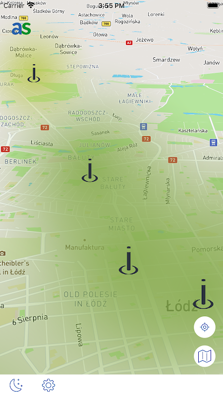 Eine Anwendung zum Anzeigen von EcoPoles zur Messung von Luftverschmutzung/Smog.