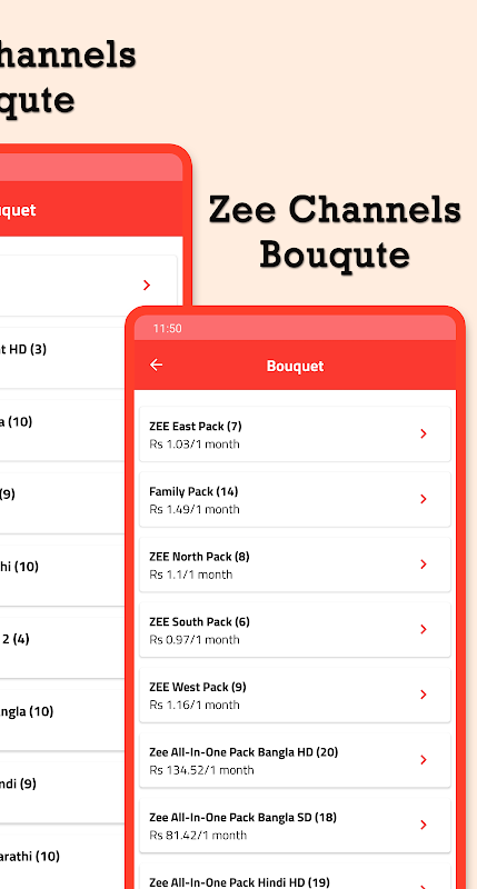 ✦ Fernsehsender aller aufgelisteten Sprachen: Kannada-Fernsehsender, Malayalam-Fernsehsender, Hindi-Fernsehsender, englischer Fernsehsender.