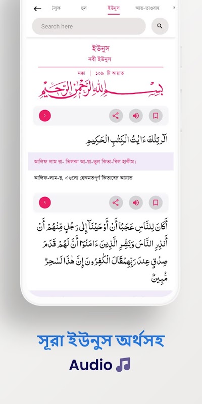 ✤ পছন্দের সূরা বা আয়াত বুকমার্ক করে রাখা যাব ে।