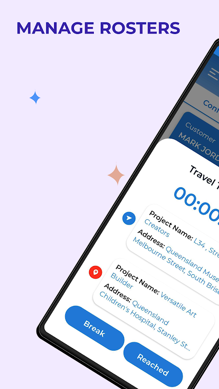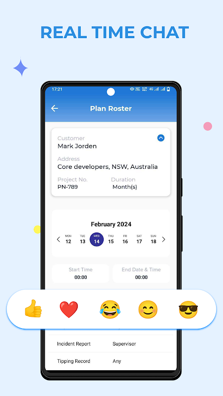 Diese Anwendung ist für alle Benutzer gedacht, die ihre Arbeitszeit und Pausen verfolgen möchten. In der mobilen Anwendung hat der Benutzer Zugriff auf die mobile Anwendung, sobald der Administrator den Benutzer genehmigt hat. Nach der Anmeldung können Benutzer alle Baustellen anzeigen, an denen sie arbeiten, sowie alle Artikel zu Arbeitsschutzpraktiken in der App. Benutzer können auch Nachrichten an andere Benutzer senden und deren Verfügbarkeit für Arbeitstage, Schichten und Pausenzeiten verwalten.