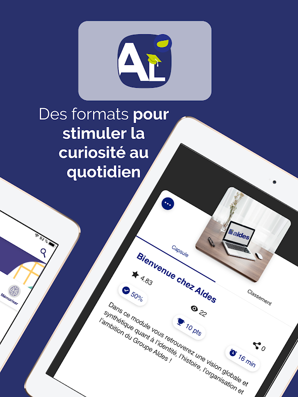 Wie Sie sicher verstanden haben, erfüllt Aldes Learning unbedingt Ihre Bedürfnisse! Laden Sie die Anwendung herunter, um alle verfügbaren Funktionen zu entdecken.