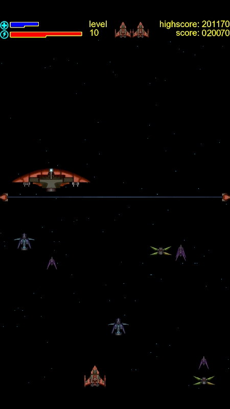 Ein außerirdisches Mutterschiff ist durch einen Schild geschützt, den man nicht durchschießen kann. Nähert sich das Mutterschiff, setzt es Welle um Welle außerirdischer Angriffsschiffe frei, die umherspringen, bis man sie abschießt oder durch eine Kollision mit ihnen zerstört wird. Nachdem man jede Welle bezwungen hat, kommt das Mutterschiff näher und erschwert so das Überleben. Gelegentlich wird eine rotierende Kugel freigesetzt – schießt darauf, um den Schild des Mutterschiffs vorübergehend zu deaktivieren und das Mutterschiff zu beschießen. Nach genügend Treffern zieht sich das Mutterschiff zurück.