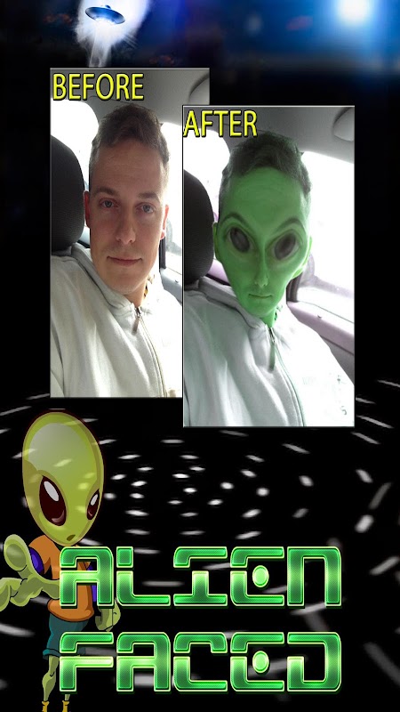 Sehen Sie - wie Ihre Fotografie verwandelt euch in einen Alien Gesicht! Nehmen Sie Ihre eigenen Fotos hoch oder wähle aus Ihren bestehenden Fotoarchiv - Sie haben die Wahl!