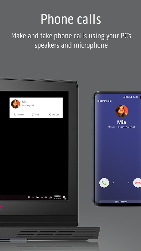 • Display-Spiegelung – Lass dir dein Telefondisplay anzeigen und steuere es mit deiner Tastatur, deiner Maus oder deinem Touchscreen.