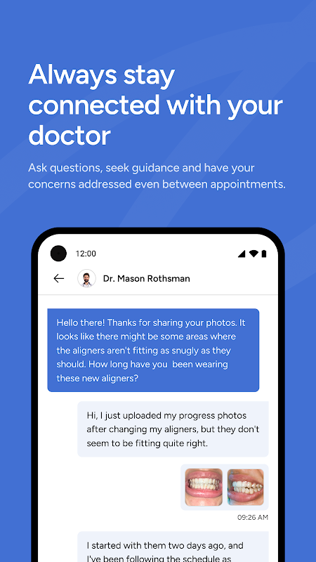 Lassen Sie sich an einem sicheren Ort beraten, stellen Sie Fragen und gehen Sie auf Bedenken ein. Unsere App stellt sicher, dass Ihre Aligner-Behandlung nie einsam wird.