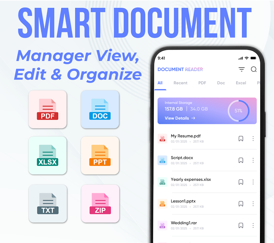 • Zeigen Sie alle Dokumenttypen in einer App an, einschließlich PDF-Viewer, Bild-zu-PDF-Konverter und Foto-zu-PDF-Tools