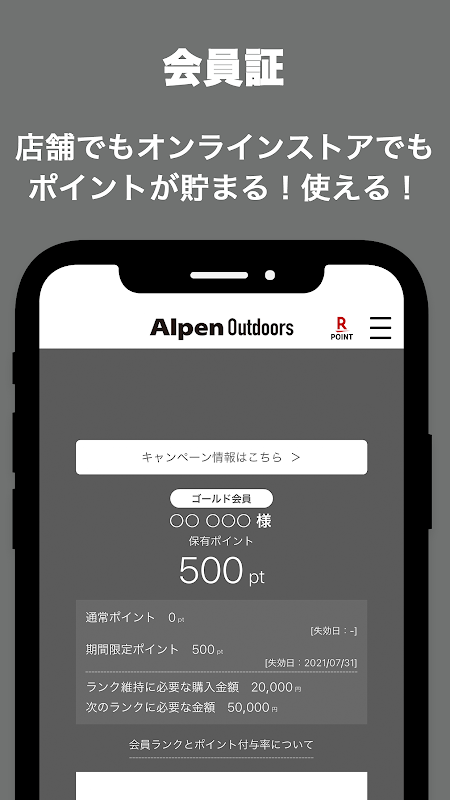 Offizielle App "Alpen im Freien". Wir liefern auch Mitgliedskarten und Coupons der Alpengruppe, die zum Einkaufen und Online-Shopping in Geschäften verwendet werden können.