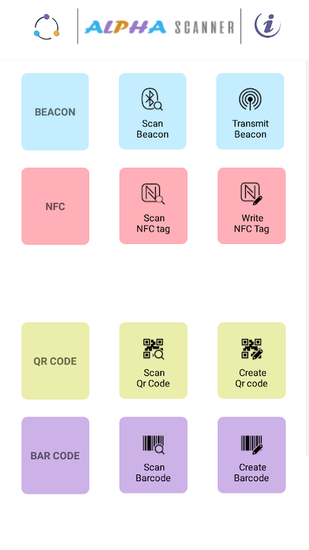 Worried to keep multiple apps to deal with same proximity job ?. Alpha scanner is all in one integrated feature app to deal with qr-code, bar-code, ble-bluetooth, nfc, hf-rfid create/scan.