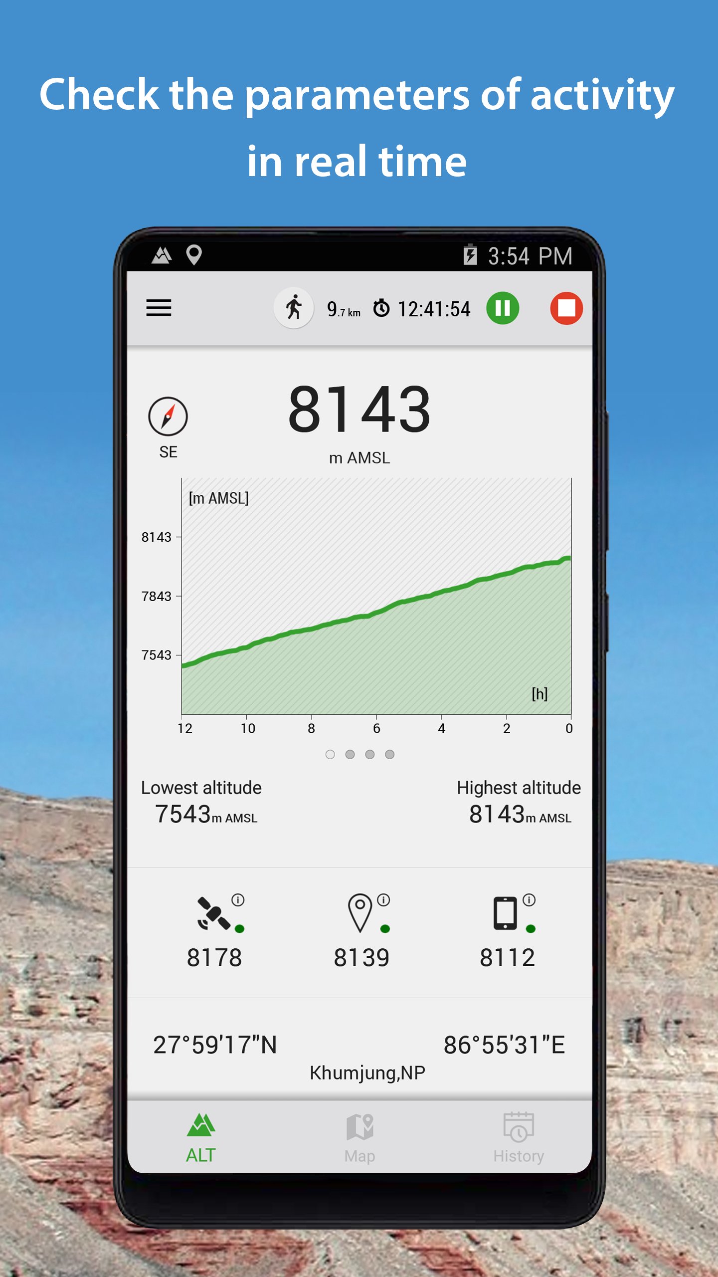 Höhenmesser ist eine intelligente Tracking-Geräte verwendet, um Höhe zu messen. Es ist ideal für Leute, die App Wandern lieben, Skifahren, Mountainbiken und andere Outdoor-Aktivitäten. Jedes Mal, und mit hoher Präzision können Sie überprüfen, Höhe, Höhe oder Lokalisierung Koordinaten. Es funktioniert online und offline.