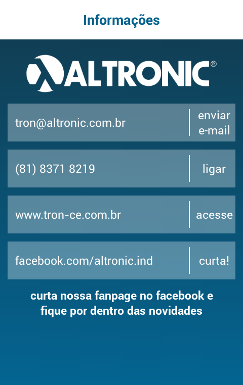 Aplicativo com todas as informações referentes aos produtos da Altronic.