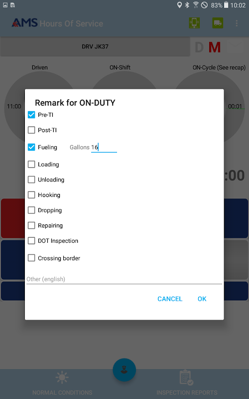 Compliant app to record driver duty status and meet the following regulations: