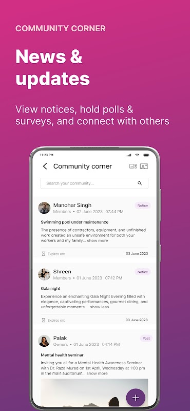 - Senden Sie E-Mail- und App-Benachrichtigungen an alle Vereinsmitglieder und die Bewohner der Wohnanlage.