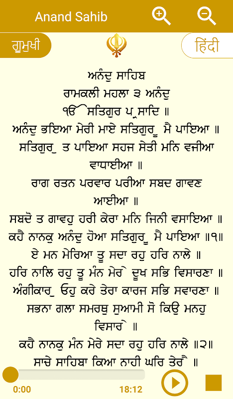 * Die App enthält die vollständige Anand Sahib Ji Paath in verschiedenen Sprachen.