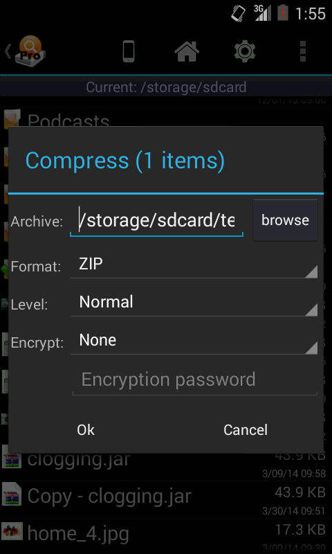 Datei-Manager, suchen, zip / unzip, keine Genehmigung, ausgenommen die Lagerung / Schreib-